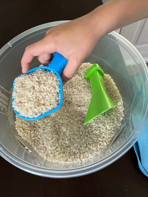 [This review was collected as part of a promotion.] These were perfect for my 2 & 6 year old. We used them with rice, beans & water. They enjoyed the rice & water the best because all the scoops worked with those.