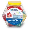 Reinforce number concepts, counting, operations and probability with these dice inside of dice. Set of 12 brightly colored dice come in sturdy storage bucket. Jumbo Dice in Dice are perfect for smaller hands.
