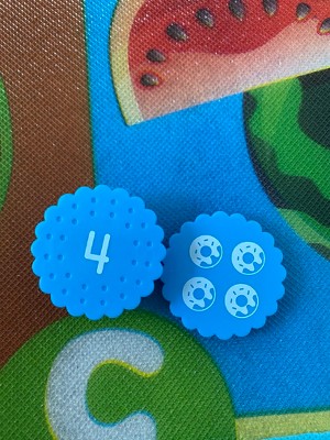 [This review was collected as part of a promotion.] I got it for my three year old he loves numbers and when he got this game he loved it he match the number so well. I'm not gonna say I hated, but what I would like for this game to have is the count in the figures on the cookie cake they're so small I just wish they were a little bigger so you could be able to count because we were counting with our fingers, and it was very tiny, but other than that is a Super Awesome Game so educational.