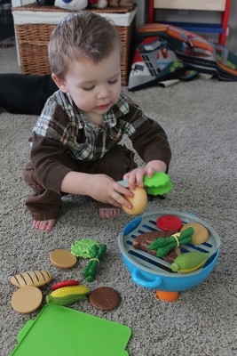 My boys (ages 18 months and 3 years) love play food from Learning Resources and this set is especially nice because so many pieces are included. The grate comes off the grill you and you can put all the food inside, which is handy for storage and also fun for my 18 month old who enjoys putting everything in and then dumping it out again. The pieces are large and the play food is so realistic. Durable, too. We received this set to review on my blog, Daily Mothering.