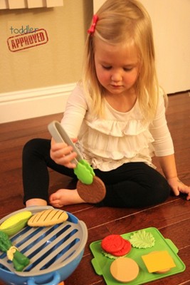 We purchased this grill for our daughter for her birthday! All of the kids absolutely love it! They love pretending to grill the food and using the tongs to put it on and off the grill. They really enjoy stacking the hamburgers with the cheese, tomato, and lettuce. I like that all of the food can be stored inside the grill. Learning Resources has the highest quality play food that I have found. As a preschool teacher, we always had cheap play food that was easily squished to a point of no return. This does not happen with this food. It stays nice, even when put into little mouths. Love it!