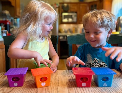 [This review was collected as part of a promotion.] I LOVE this toy! My daughter gets a kick out of just putting the lids on the houses but we have been able to use them during her speech therapy sessions and they've been so helpful!