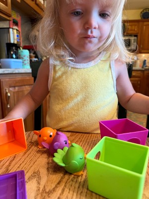 [This review was collected as part of a promotion.] I think this was visually pleasing for my niece. It is also a versatile toy. My niece has found other things aside from the birds she can place in the boxes. The covers tend to get a stuck on once in awhile.