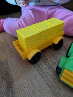 [This review was collected as part of a promotion.] My child gravitated toward the colorful fun farmer play set. It was easy for them to grasp and to push around the house. She especially likes the tractor and the little hay bales that you can use for hide and seek. I like that it came with the book to read for parents to engage. I would recommend for little kiddos.