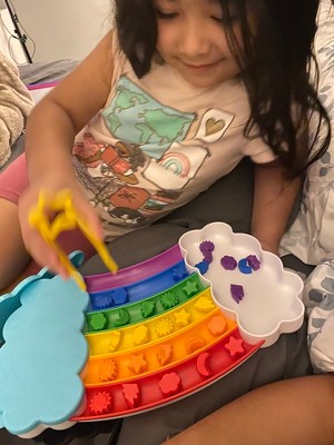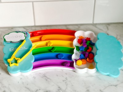 [This review was collected as part of a promotion.] Learning Resources sent me this free sample through the BzzAgent sampling program. This was really fun for my 3 year old. She was able to manipulate the pincher tweezers and sort the colors into the rainbow troughs. The colors are very vibrant and the construction of the toy is well done. There are cards that came with the toy with other ways to play. Cons: the sorting pieces are very small. There are not a lot of ways to play with the toy. You can sort, count and sort by piece type. The cards that came with the toy are pretty thin and will not last with much use.