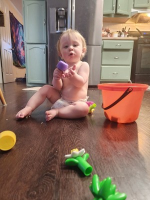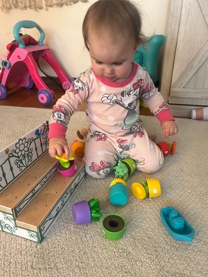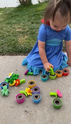 [This review was collected as part of a promotion.] My 2 year old is obsessed with this toy! I love the bright colors and they are super durable. It makes for hours of fun! And she feels like she is gardening. I love watching her figure it out