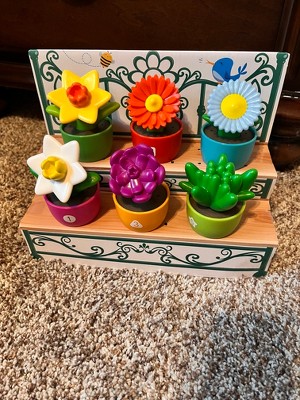 [This review was collected as part of a promotion.] I love the bright colors and how the pots can be switched and used for different flowers. The flowers are copies of real flowers and this helps teach the kids to recognize them. The shelf that came with the set is really cute and could be colored for more fun. The kids were very excited about this set and all is left is teach them clean the mess afterwards.