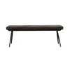 Product Features Designed to be placed alongside a dining table or as a foot-of-bed addition, providing extra seating and enhancing the space's functionality Fits perfectly within industrial-style loft apartments or modern farmhouse homes, complementing these aesthetics with its design The bench offers a padded cushion that ensures complete comfort and support, making it suitable for extended periods of sitting The bench's cushion features a hand-dyed goat leather fabric in a dark espresso hue with a channel tufted design, adding a vintage and boho-chic charm to the overall aesthetic Supported by tapered and flared metal legs in a deep black finish at each end, providing stability and a stylish contrast to the leather upholsteryDescriptions Romance Copy Invite guests to take a seat on this stylish dining bench. Faux leather upholstery with tufting enhances the appearance of its silhouette, while the base is supported on metal tapered legs. Product Details Set includesOne (1) dining bench Bench dimensions:19 inches high x 54 inches wide x 15 inches deep Fabric ColorEspresso Finish ColorBlack MaterialsGoat leather, foam and metal
