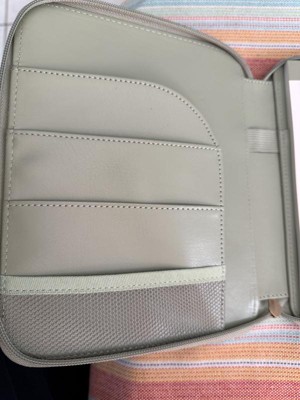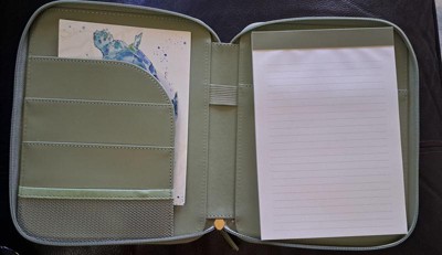 I’ve been enjoying using this organizer so much recently! It’s compact enough to fit inside my purse or tote bag while still being spacious. It has several slots inside of it for organizing documents or notes, a pen slot, and a notepad which I’ve been using to create to do lists and my weekly grocery lists! The sage green color is gorgeous and it looks so high quality!
