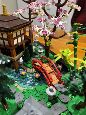 This is an extremely well designed and beautiful set. I really like how the various trees can be arranged to go in different holes, how the translucent tiles overlap different colors of ground, and the small details like the green tea in the tea set and koi on some of the fish tiles. All of this is great. The manual is a little hard to read with various colors of gray on a gray background, I would prefer things to be a bit higher contrast, but it's workable. This was a really fun build and looks great on display.