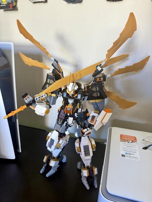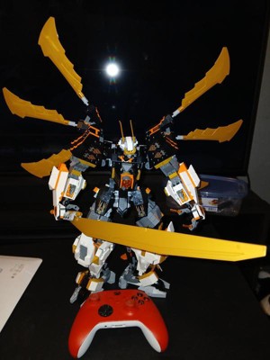 - Dragon wings and sword – The mech action toy also has a pair of dragon wings on its back, a large sword and a cockpit for the Cole minifigure under its head