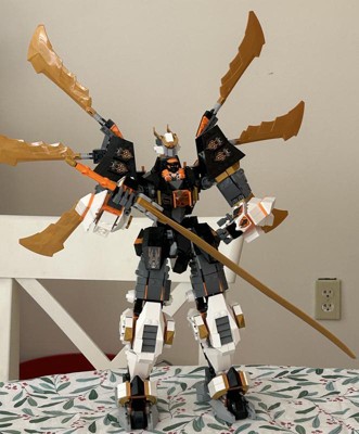 This mech has great joint movement compared to the other mechs in the ninjago sets with the knees being able to move 360°,the arms and hands having pretty full motion,the feet support the build very well as it is a very heavy build and the feet can also have a lot of viable motion. The recolouring of the dune lego set (21353) blades for the back of the mech is a great reuse of pieces which i enjoyed.Enough said this mech is overall really good and would recommend to anyone looking to build upon their collection and i’m also looking forward to the next titan mechs to come out similar to this titan mech