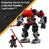 - COLLECTIBLE DARTH MAUL MINIFIGURE – The Sith warrior with his signature double-bladed red Lightsaber can be placed in the cockpit and clips into the mech