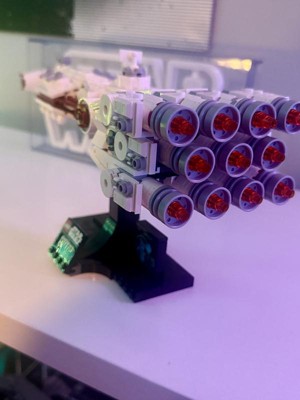Great use of unique build techniques that allow this set to be displayed on a bookshelf or desk. Looks great next to others in the starship collection. With seven bags and only a few easy stickers to place, I was very pleased.