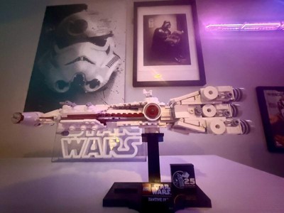 First i want to say how vibrant this set is. After building so many Lego Starwars kits in gray this was a nice change. Its pretty detailed and although the size is UCS scale it makes an impact when you see it completed. There is a easter egg in the build as well (no spoilers) The only thing i am disappointed about is that lego opted for stickers instead of printed bricks. Iv loved this OG ship i was kid and its great to add it to my collection