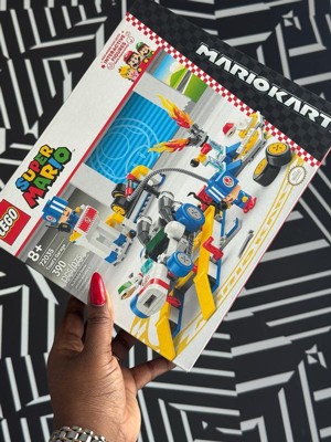 - MARIO KART TOY – Let kids play as different characters as the pit crew prepares a B Dasher kart for racing action at Toad’s garage with this customizable LEGO Super Mario: Mario Kart toy