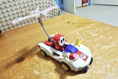 It's a cool car. The brick built wings are fun. Wish we'd got another colour shy guy or he was different than previous versions. Was good value for money, mario always seems to be. My mario kart korner is full though so my only problem is I just don't know where to put it 😣🚙