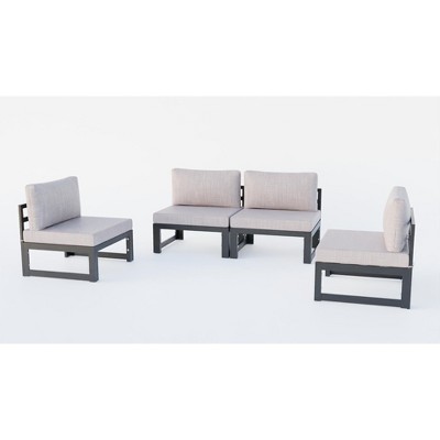 Product Name: LeisureMod 2-Piece Corner Chair Loveseat Upholstered in Polyester with Aluminum Frame and Removable Cushion Hamilton Collection in Charcoal Blue