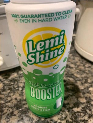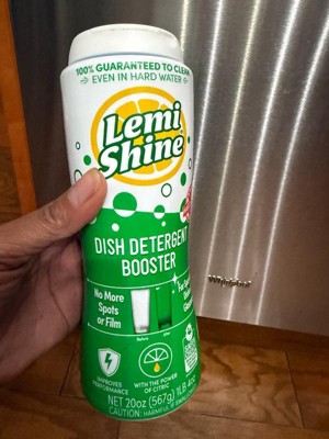 [This review was collected as part of a promotion.] Awesome Lemi Shine 🍋 Dish Detergent Booster Fresh Lemon Scent Cleans with natural citric acid Works n all dishwashers Leaves sparkling shine