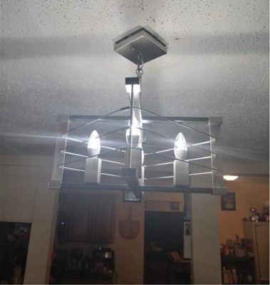 [This review was collected as part of a promotion.] I had my husband help me with the install on this. It was very easy to put together and there were detailed instructions. It took the both of us to actually hang it but it did not take much time at all. I really liked the stainless and black look as it matched the colors of our kitchen well. I did go buy some Edison bulbs to complete the industrial look of our home. Overall I am very happy with this light fixture. Install was easy and it looks beautiful.