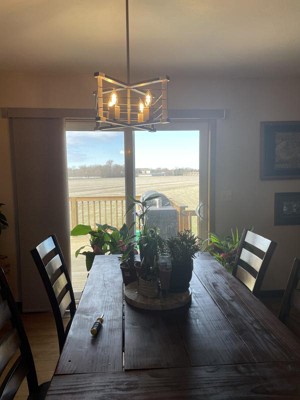 [This review was collected as part of a promotion.] This light is absolutely beautiful. I am in love with the look of this light. It has a beautiful finish on it. The instructions where easy to understand. We had no issues installing this light. It is hanging above my kitchen table and looks absolutely beautiful. It fits in with my farmhouses chic style i have in my kitchen. I love it.