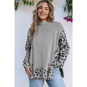 Leopard High Neck Side Slit Oversized Sweater