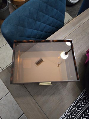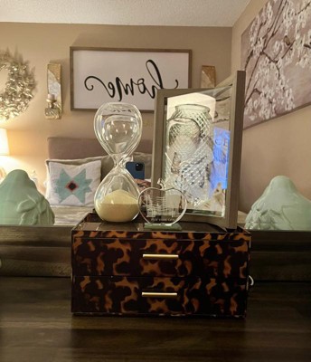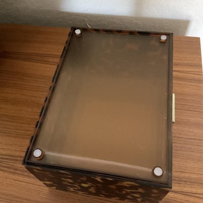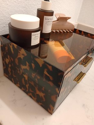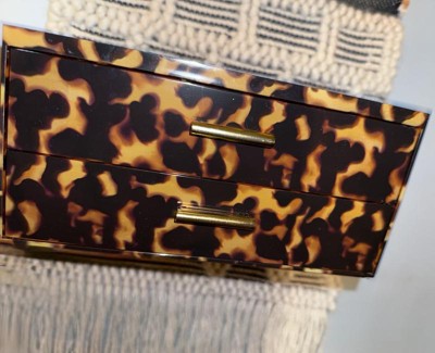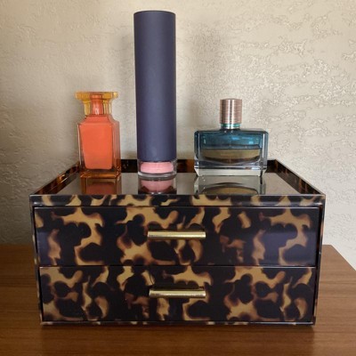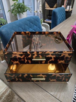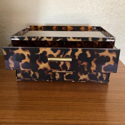 Organize your vanity or any other space in trendy style with the Stacking Drawers from Threshold™. This pack of two drawers is made of acrylic and covered with leopard print for an attractive look you'll love while helping maintain a clean and organized space. Plus, they come with an extended gold-tone handle for easy opening.
