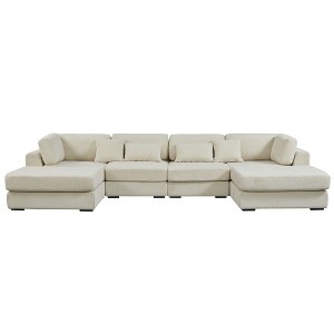 Lesly 144 in. Square Arm Polyester Corduroy U-Shaped Modular Chaise Deep-Seated Oversized Sofa, Beige