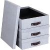 Bigso Oskar Canvas Fiberboard Document Box 3-Pack – File Organizer for Paperwork with Lid & Leather Handle – 3.3" x 10.2" x 13.8" Storage Solution