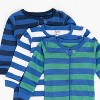 - 3-Pack Baby Footed Pajamas Set – Includes Striped Blue & Green, Blue & Navy, Blue & White