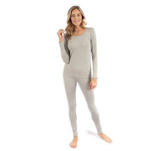 Leveret Womens Two Piece Neutral Solid Color Thermal Pajamas - 1 of 3