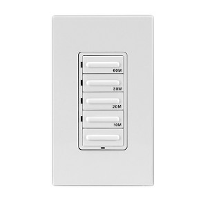 The LTB60-1LZ, Leviton Decora Timer Switch offers advanced features, superior accuracy and contemporary aesthetics. It provides convenient timed control of lighting and motor loads in homes, offices, schools, libraries and other small commercial applications. It is ideal in automating control of heat lamps, hot tubs, attic and exhaust fans. 1HP, Single pole, 3-way or more locations (with VP0SR). Has four preset buttons for 10 minute, 20 minute, 30 minute and 60 minute countdown timers.