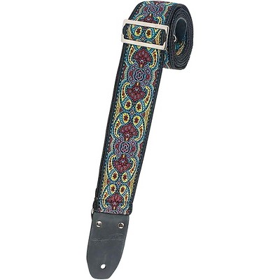 A handcrafted guitar strap built from durable polyester with a Mariachi print.