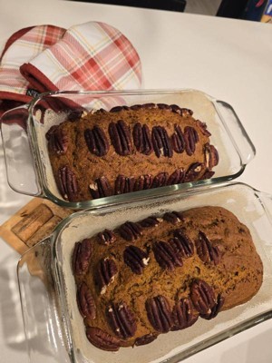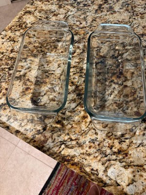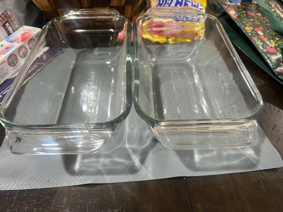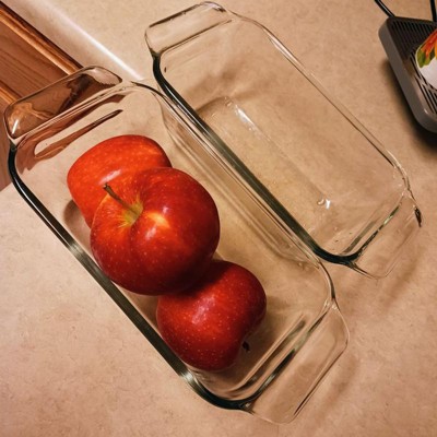- Includes two clear glass 1.6 quart loaf baking dishes designed to nest and stack together for space-saving storage.