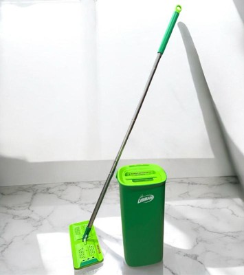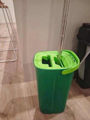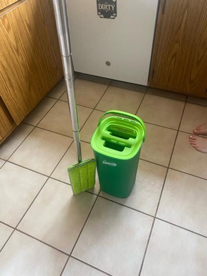 [This review was collected as part of a promotion.] Love this compact quick mop system. It’s easy to carry around, rinses and wrings out mop easily and the flat mop is great for getting around our furniture.