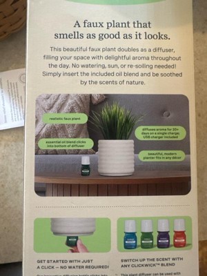 A: Thank you for asking about the Click Wick Essential Oil Blend that comes with our Grass Planter Diffuser at Target. The included blend that comes with this diffuser is Walk in the Woods! We have a variety of other ClickWick blends available that are available at Target and Target.com which are compatible with your Planter Diffuser too!