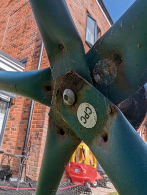 We bought this 5 years ago. It was kind of a pain to assemble, but lots of big stuff is so no big deal. It seemed it kind of bent easily whenever we moved it around to mow under it but sturdy when the kids were on it. After 5 years it's already rusty on the parts that touch the ground, and some other places. The bigger issue? As we tried to take it apart to move it to our new house, all the allen head screws stripped. No way to get them out. Already tried all the hacks, got a screw extractor set that won't work because they're Allen head screws rather than regular ones. The bars are now bent and cracking where we got a few pieces taken apart from the pressure of not being supported. The whole thing is now trash. Really expensive toy for only 5 years of use. And we have 5 young kids all upset that we have to throw it away.