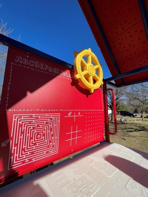 [This review was collected as part of a promotion.] We received the Lifetime Big Stuff Deluxe Playset in return for an honest review and we have been greatly pleased with it. Assembly took about 3 days, and that’s with being restricted on when we could work due to weather. The instructions were fairly straightforward, with a few minor hiccups. We love that the nuts used throughout the majority of the playset lay flat and don’t leave anything to catch children’s clothes or hurt anyone. However, because of the length of the bolts, it was somewhat difficult to get the bolts lined up with the nuts before we could tighten them. The bolts that went through the end caps on the top of the monkey bars were particularly difficult, as the holes in the end caps didn’t line up perfectly and required a lot of effort to get things in place. We also felt it was easier to attach the climbing rope to the leg of the swingset immediately and go ahead and attach the foot on the A-frame instead of waiting to do that when the deck was attached and adding more weight. Additionally, we needed to drill the holes in the deck of the playhouse for the slide before attaching to the swingset, as it’s quite difficult to wedge under the deck to see where to drill, especially when the person with the drill wears bifocals. Otherwise, things went smoothly and went together great! My children have greatly enjoyed playing on the playset and will easily play outside for a few hours now, with plenty of different activities to keep them busy. Their favorite features are the chalkboard, as they have been using sidewalk chalk on everything possible right now, and the map and roads on the floor of the playhouse. The ship’s wheel obstructs access to part of the chalkboard, but that doesn’t seem to bother them too much. The rung spacing on all the ladders is a little too large for kids in the 3-5 range, as they are further apart than a standard ladder, and the younger kids could also benefit from handles on each end of the monkey bars to help them reach the top of the ladders. My kids have learned to deal with those difficulties, but they do have to be very careful to not fall because of them. The roof does not have anything to cover the gap where the two sides come together, so rain will get through easily to anything left on the deck. Admittedly, I prefer the green and grey color scheme of the playset shown in the instructional video, but the bright primary colors that we have on ours are still beautiful and appeal to my young children. The size of the playset is amazing, providing plenty of features without taking up a huge portion of our yard, and will still give plenty of space for all our kids to play as our family grows. Overall, we are very satisfied with the playset and look forward to using it for years to come. We found it to be very sturdy and we have no worries of it wearing out for a long, long time.