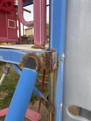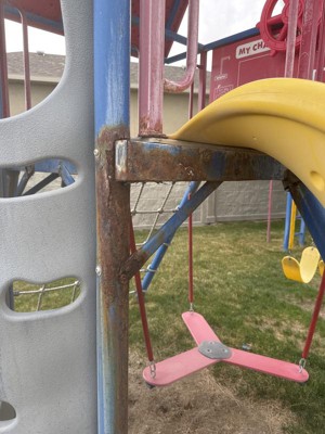 I purchased this set several years ago and it rusted from the inside out making it unsafe to use. It started rusting the second year I owned it. I also purchased the jeep and airplane teeter totter and they all rusted the same way. These are very expensive play sets that do not last.