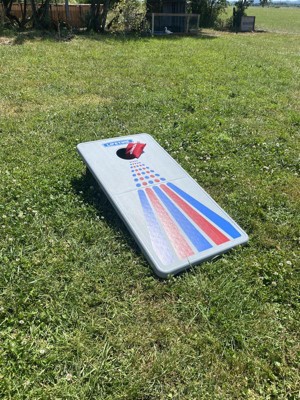 [This review was collected as part of a promotion.] We love it! Always pleased with Lifetime products. This set is very durable and functions just as well as the wood ones we have played with in the past. Love the Red and Blue Colors too! Some of our favorite things with the set are the holders for the beanbags and the handles for transporting the set, it's nice and light too.