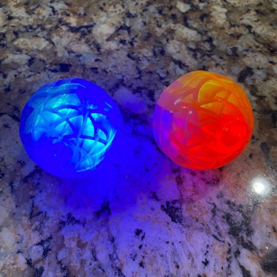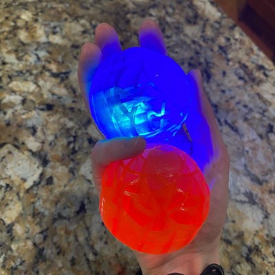 These light-up bouncy balls are such a fun toy, great for the pool or the bathtub. They are lightweight and easy to grip . They stay lit for several seconds after being activated. I wish they lit up for a longer period of time, but I know that would kill the batteries a lot faster. Unfortunately, the batteries are not replaceable, so once they die, the balls are basically trash.