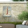 This ready to hang, gallery-wrapped art piece features a red and white lighthouse in the center of the frame.Prominent Colors: White, Tan, Grey, Red, BrownDanhui Nai was born in mainland China and raised in an artistic household with her sculptor father and painter mother. Her natural passion for art was guided through classical training which she applies in her California studio to create beautiful, on-trend artwork in a variety of media. She studied interior design later in Paris and New York City. She worked in the textile industry in Manhattan, where she continued her studies and artistic development.The Outdoor Canvas Art by Trademark Fine Art is a great way to add a pop of color to your poolside, balcony, backyard, garden, or porch. This all-weather outdoor decor is printed with UV gel inks to prevent fading for years to come. These colorful outdoor pictures for the patio have been digitally reproduced, printed on all-weather artist canvas, stretched, and gallery wrapped on all-season stretcher bars for a clean finish.