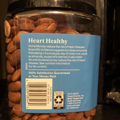 These Lightly Salted* Roasted Almonds from Good & Gather™ are a versatile powerhouse you won't want your pantry to be without. Whether you munch them as a solo snack or use them to enhance a recipe, these roasted, salted almonds pack classic almond flavor that's sure to please. The large container is perfect for keeping at your desk to help you power through your day, on the kitchen counter for a quick snack or for bringing to a party to share with friends. Try topping a salad with them for a touch of extra crunch or mixing into your morning oats for satisfyingly nutty flavor. *see nutrition information for fat content