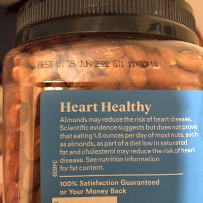 - Lightly salted almonds make for a heart-healthy snacking option* (*Almonds may reduce the risk of heart disease. Scientific evidence suggests but does not prove that eating 1.5 ounces per day of most nuts, such as almonds, as part of a diet low in saturated fat and cholesterol may reduce the risk of heart disease. See nutrition information for fat content.)