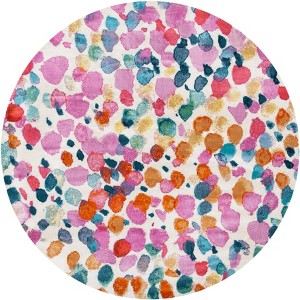 Elevate your living space with this beautifully crafted round area rug. Measuring 6 feet 7 inches by 6 feet 7 inches, its contemporary design effortlessly blends rose and gold hues, bringing a touch of elegance to any room. Made in Turkey using power loomed technique, this rug features a polypropylene pile, offering both style and functionality. With a sleek height of 1/4 inch, it fits seamlessly under furniture while adding a layer of comfort to your floor. Perfect for living rooms, dining areas, or bedrooms, this rug transforms your home with its modern flair. Embrace the art of home decorating and invest in a piece that speaks volumes about your taste. The harmonious color palette and round shape make it a versatile choice for any interior, offering a visually pleasing focal point. Redefine your space with this exquisite rug that marries form and function, making every step a delight.