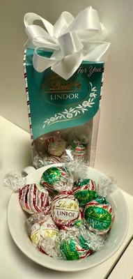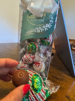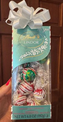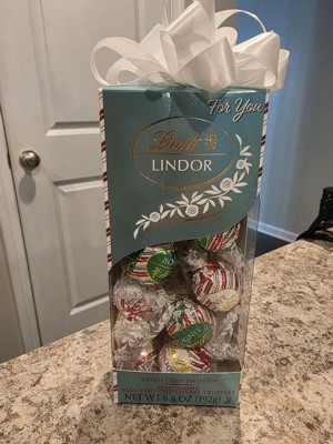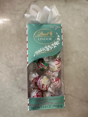 Remind a friend or loved one of how much they mean to you this holiday season with LINDOR Holiday Assorted Peppermint Chocolate Truffles. With festive holiday packaging these chocolate candy truffles are great for sharing, gifting and giving as stocking stuffers for family and friends. LINDOR chocolate truffles also add sparkle to your holiday candy dishes. Each of the truffles in this assortment are finely crafted with a chocolate shell that envelops an irresistibly smooth, melting truffle filling. When you break the truffle's shell, LINDOR starts to melt and so will you. LINDOR truffles are individually wrapped, making them perfect for enjoying anytime and anywhere, whether you're savoring a moment for yourself or sharing with others. Lindt chocolates embody the passion and expert craftsmanship of Lindt Master Chocolatiers for a luscious and rewarding chocolate experience. Made to Melt You. *Information online not complete; check label of actual product being purchased.*