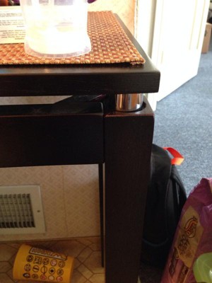 Bought this for my elderly mother to use as a breakfast table in her power wheelchair. It was perfect! It fit in with her more expensive furniture. Most importantly it is stable. She recently moved into a living center apartment and she needed to downsize. My husband put the table together in about 30 minutes.