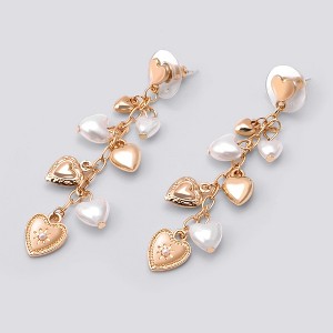 Linear heart earrings - These delicate linear pearl heart drop earrings from Wild Fable add a stunning finish to a variety of outfits. They easily transition from day to evening and exemplify the "Ballet Grunge" trend this season. These earrings showcase pearl heart shape beads and tiny heart beads dropping from a single chain in gold plating.