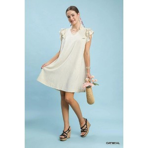 Linen Flutter Sleeve Shift Dress with Pockets