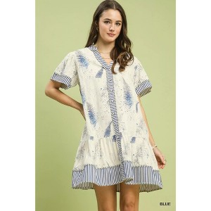 This linen printed button-front tiered mini dress is perfect for a boho-chic look. Featuring an allover botanical-inspired print and a split V-neck with button-front detail, it exudes a laid-back yet stylish vibe. The inclusion of side pockets adds functionality to this charming dress, while the tiered skirt creates a flattering silhouette. Lined for added comfort, this dress is a versatile and trendy addition to any wardrobe.